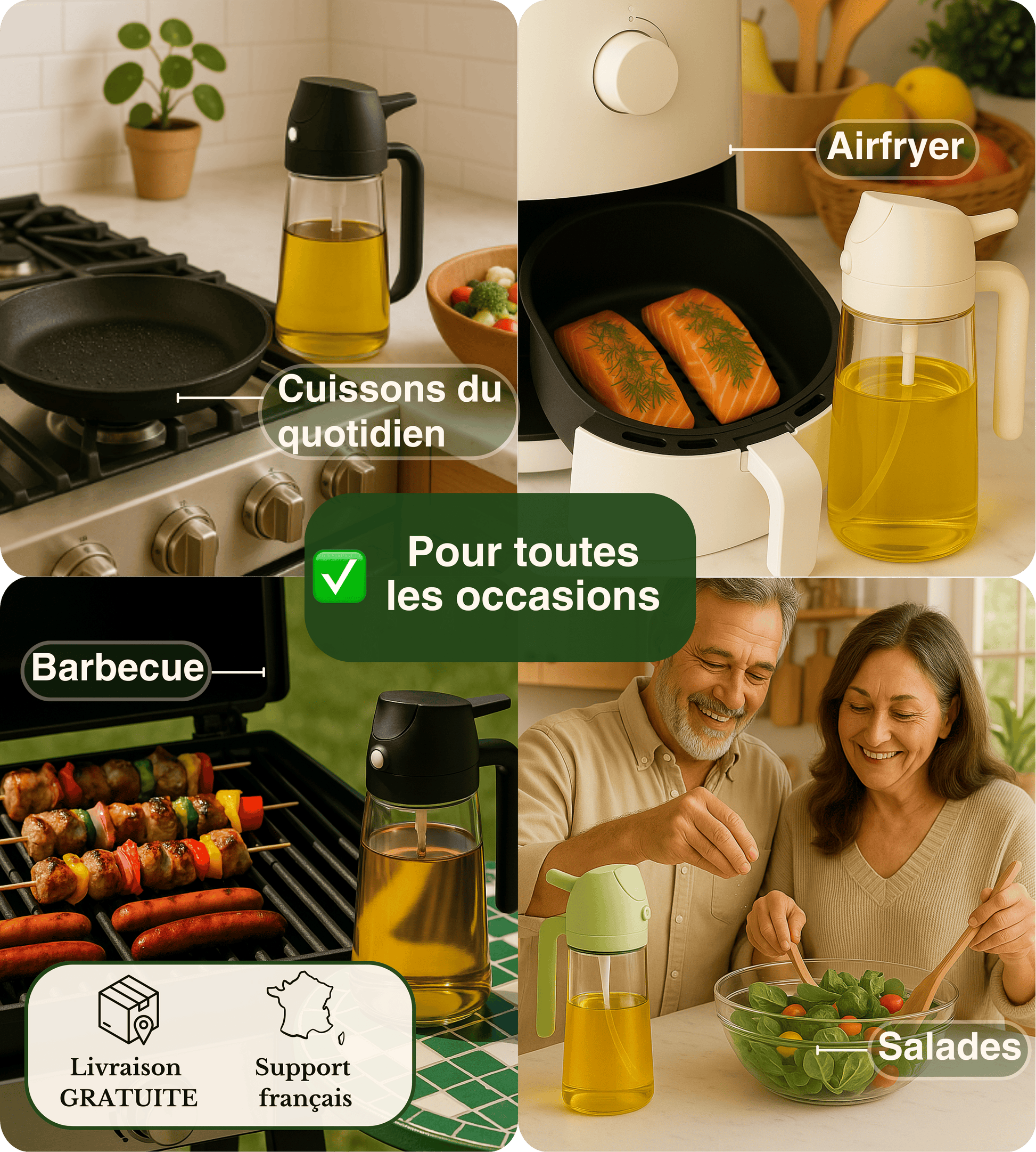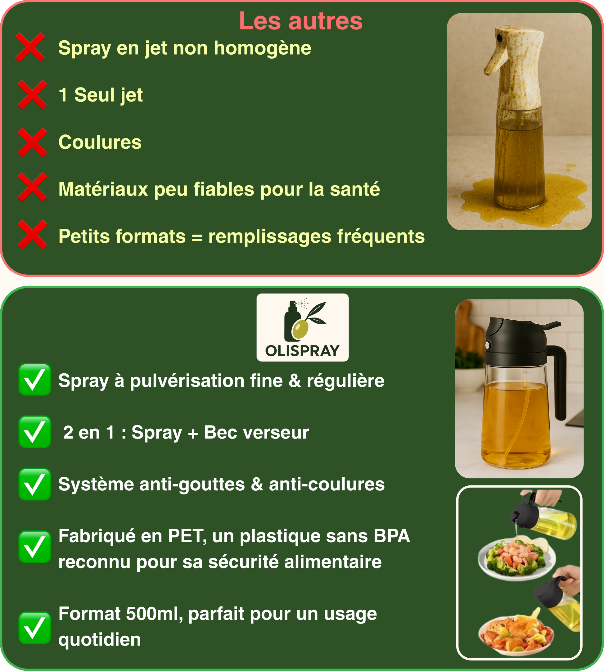 💚 Adoptez une alimentation plus saine & contrôlée : Réduisez votre consommation de 6L d'huile d'olive par an, soit de 50 000 calories ou 300 cuillères à soupe.
